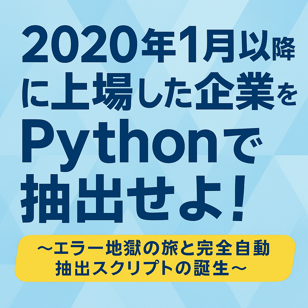 今回の記事では、Python を使って「2020年1月以降に上場した企業」を完全自動で抽出しました。 その集計結果を PDF 一覧(2025年11月時点) としてまとめています。